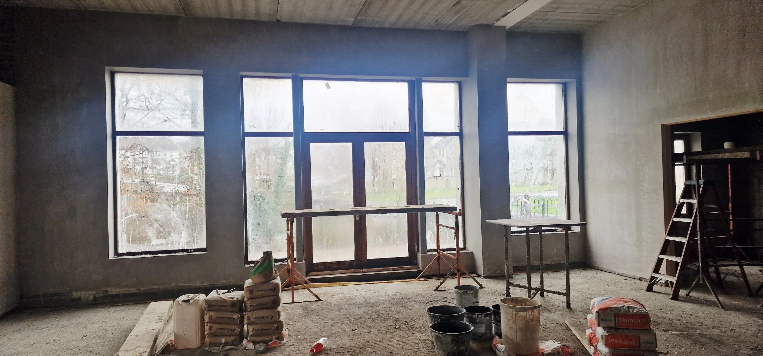 Amazing to see the studio coming together under the amazing expertise of the builders, electricians and plasterers! They’re all doing a phenomenal job and things are really taking shape. The whole vision is coming to life- the lighting is amazing with windows on three walls and a huge glass shop front wall. There is a dedicated kiln room, a room for frames and shipping, a kitchen, a bathroom and then the main work area that may also be a small showroom at some point. It’ll probably take me a while to get it all set up after the build but things are moving!
